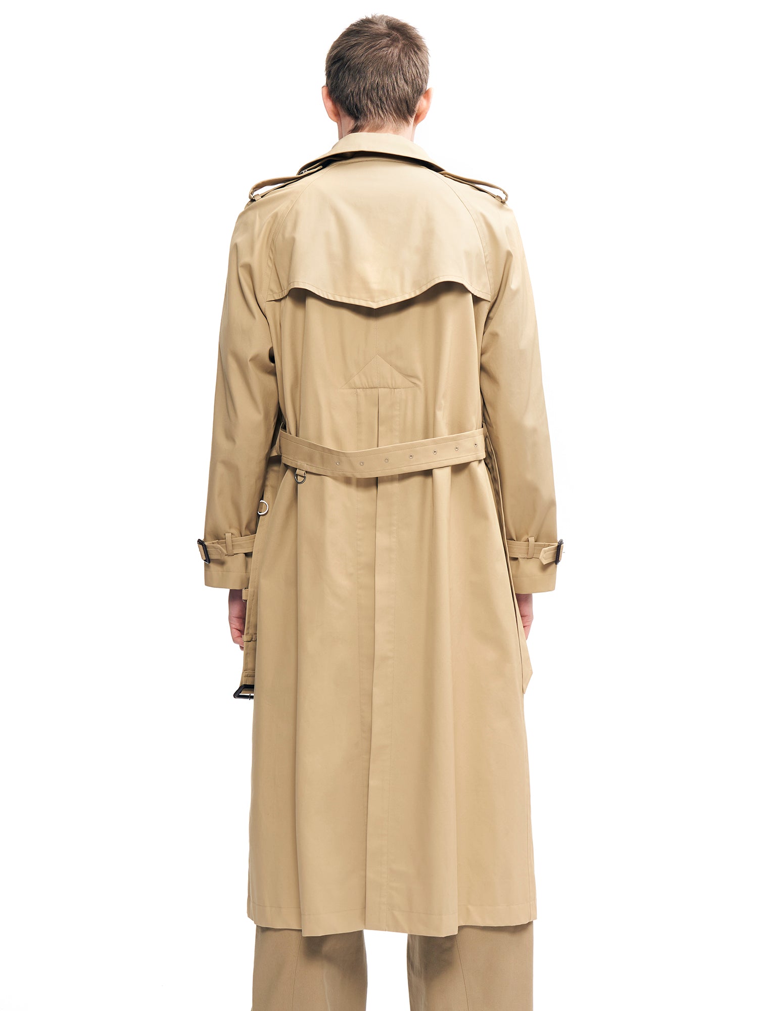 YUKI HASHIMOTOのアイコンともいえるトレンチコート。クラシカルかつモードな雰囲気漂うデフォルメされたディテール。特徴的なアンブレラヨーク、深めに入ったスリット、長めの着丈により着用時のダイナミックな生地の動きを楽しんで頂ける1着です。