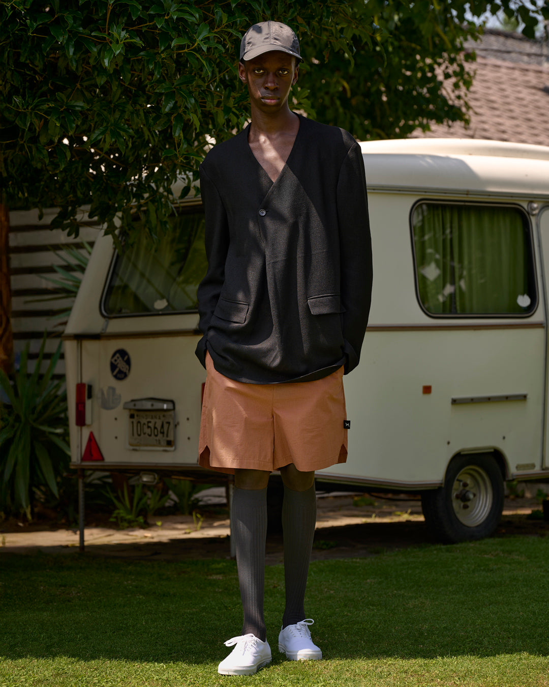 定番のY NECK JACKET に風通しの良い「カラミ(ラッセル)」 素材を使用し、蒸し暑い気候下でも快適に着用可能な設計。